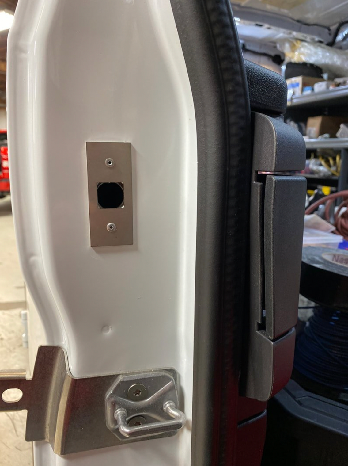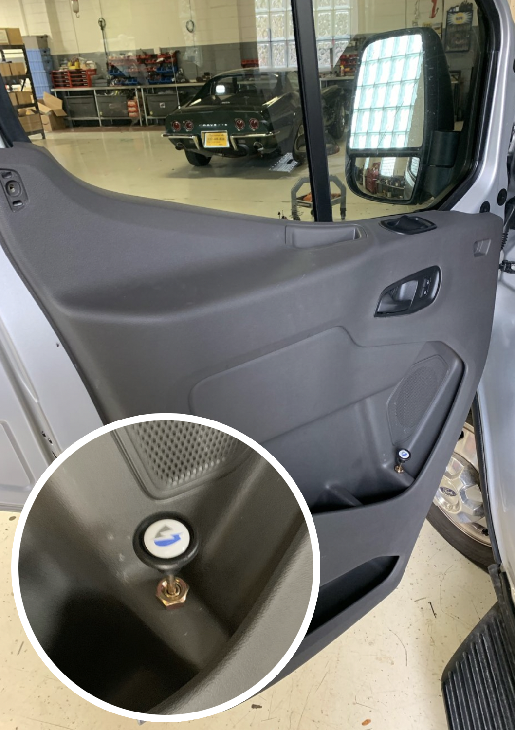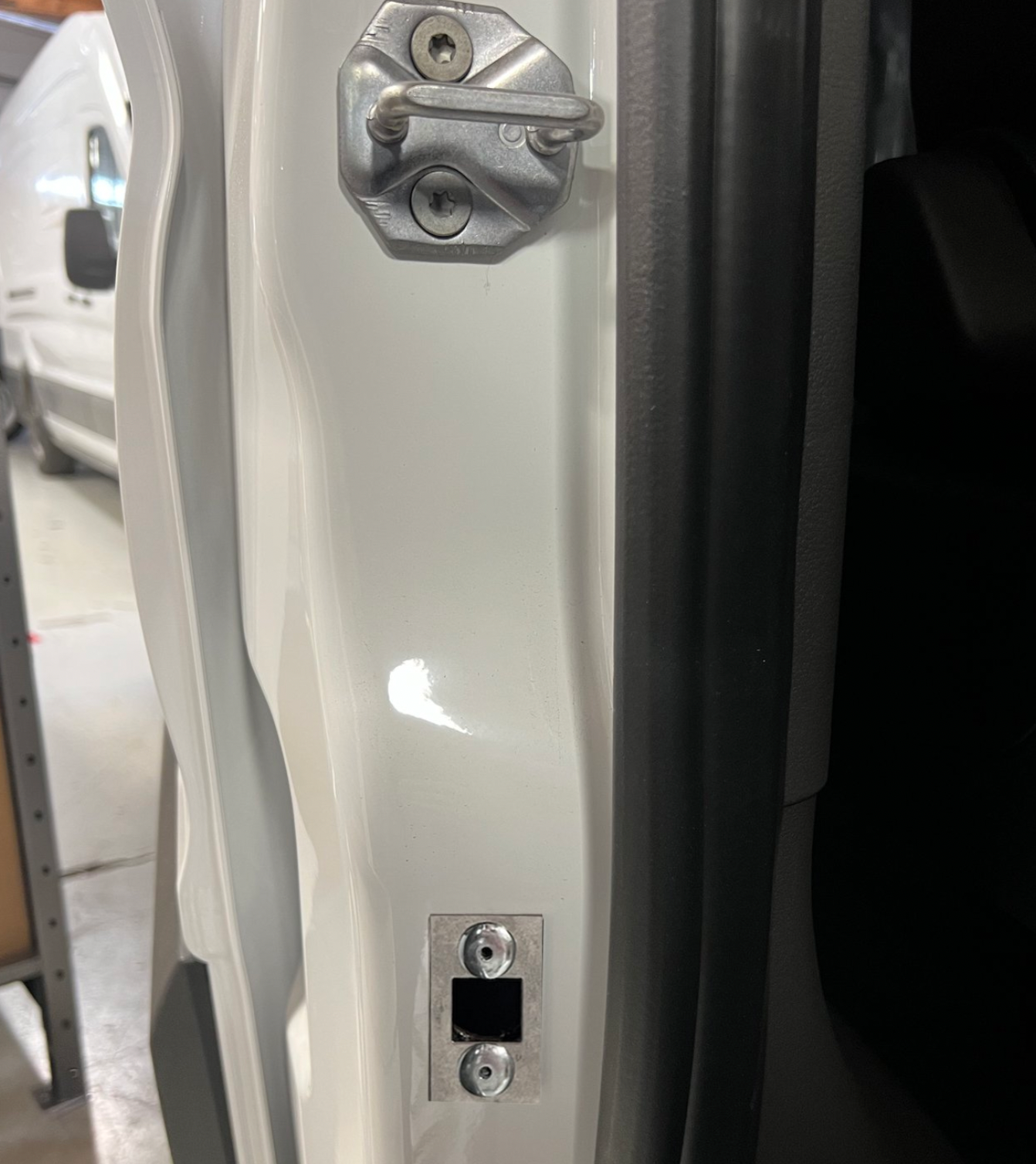 Please note that the photos are for example purposes only. Installation methods may vary due to the different van models or years. There is no specific location where the lock must be installed, as it offers flexibility and a universal fit. Some Ford vans are