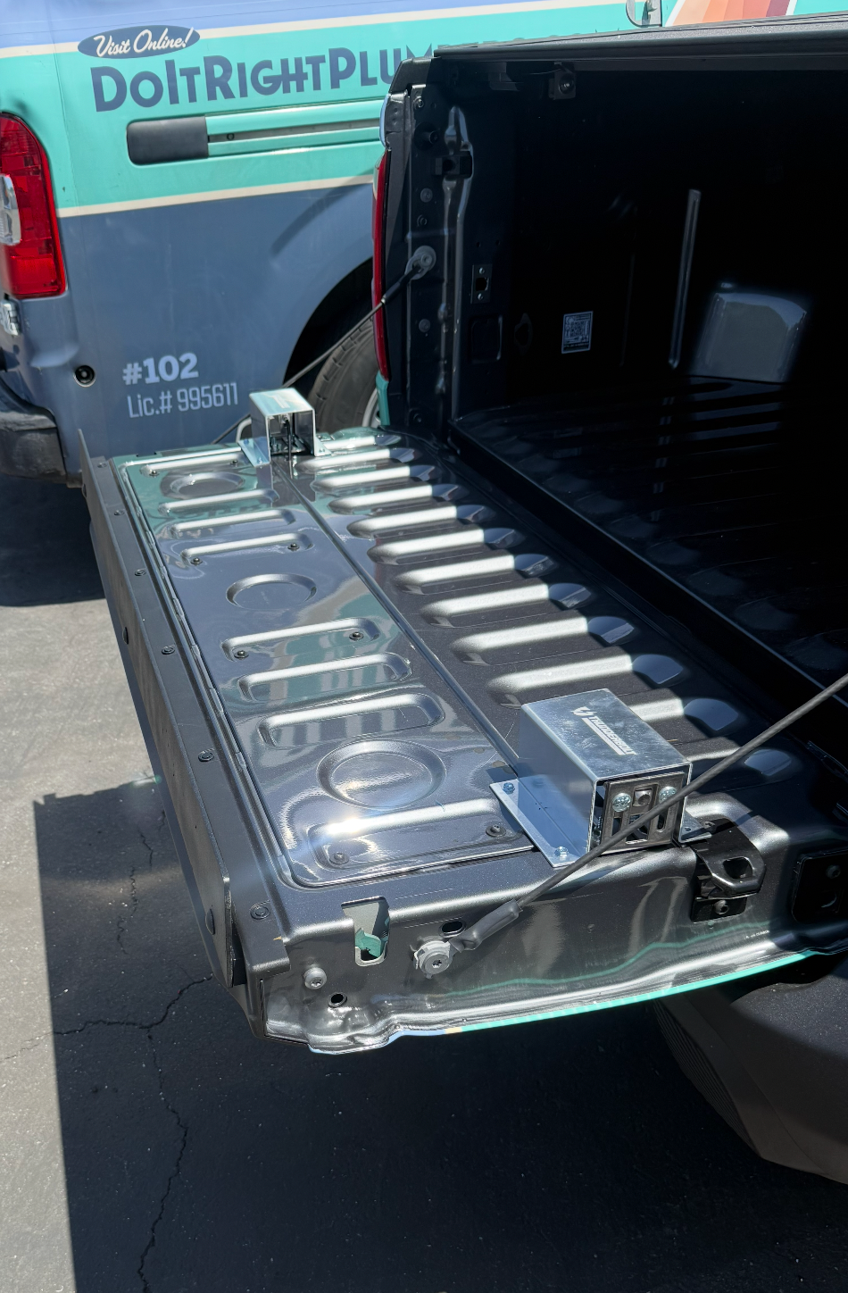Examples of Thunderbolts® securing a pick-up truck tailgate.